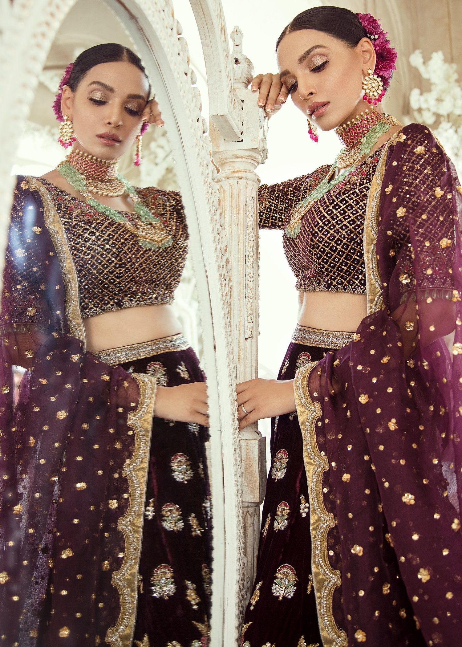 Pakistani Lehnga for Bridal In plum Color With velvet embroidered work # B6110